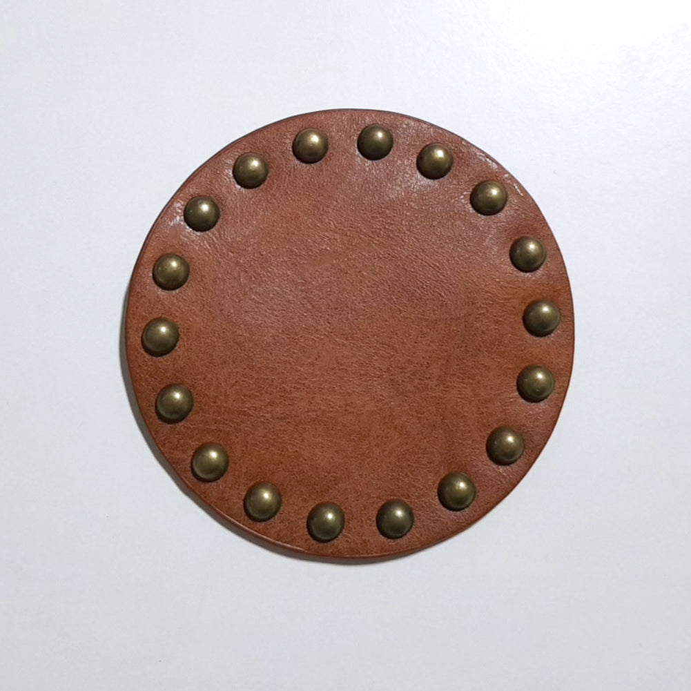 Exclusive coasters, featuring stylish metal rivets and double thickness for added durability. Crafted from 100% vegan/faux leather, these easy-care coasters with a sleek black reverse side make a stunning addition to your dining table, seamlessly combining style and practicality.